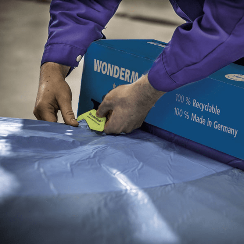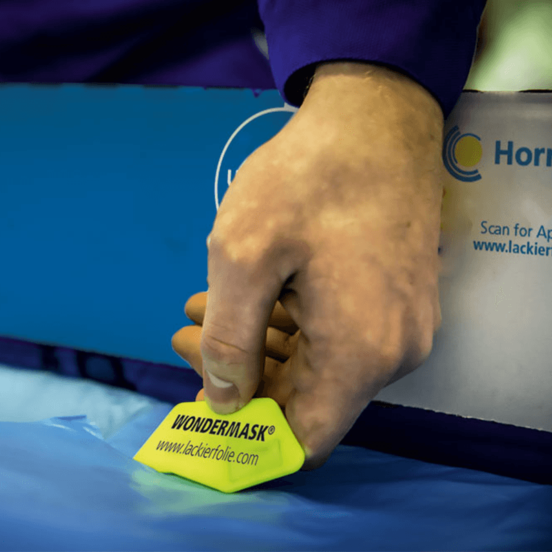 Protect vehicles during painting with AQUAFIT Masking Film, made 100% in Germany. Heat resistant up to 110°C, it clings statically to surfaces, reducing dust and preventing paint or filler bleed-through. Its smooth cutting and contour recognition make application easy, while being tear-resistant and lint-free.